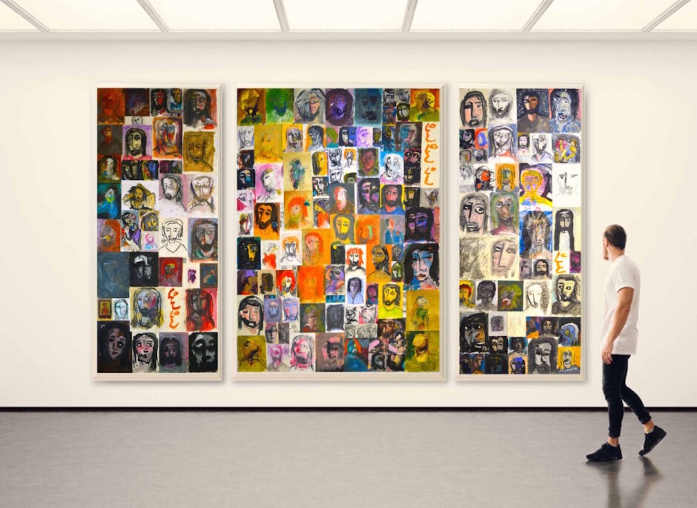 Size: 240 x 420 cm Triptych – Paper drawings marouflage on canvas